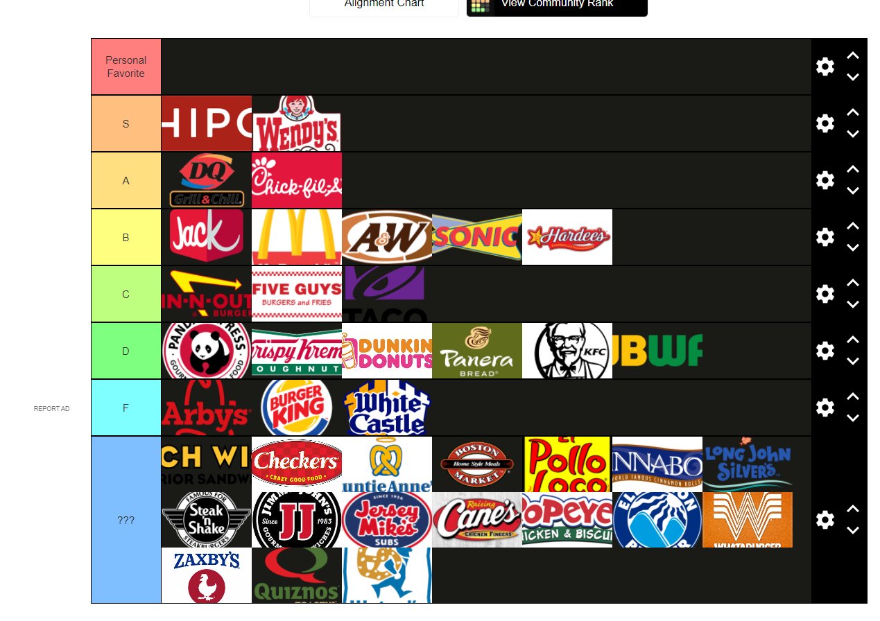Drew On Twitter Fast Food Restaurant Tier List And Yes Wendys Is Better Than Chick Fil A Overrated Headass Https T Co Gx1h8yp8fm Twitter